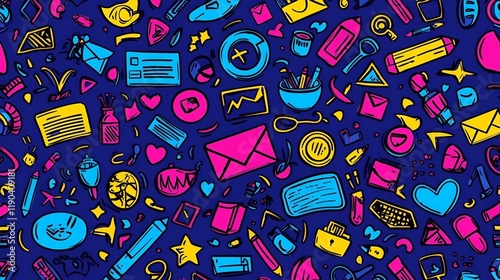 Digital pattern design showcasing vibrant online learning icons, symbolizing education and technology integration in modern learning environments.