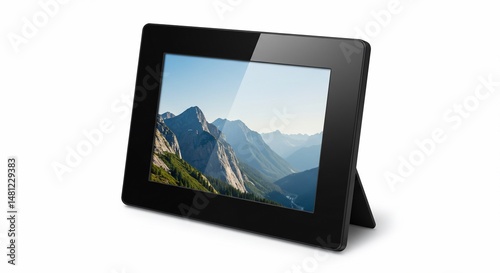 digital, photo, frame, display, picture, electronic, smart, black, modern, technology, device, screen, image, art, design, interior, home, decor, table, mountain, landscape, scenery, nature, view, sky, cloud, travel, tour tourism, vacation, holiday, memory, souvenir, gift, present, minimalist, style, elegant, stylish, isolated, displaying