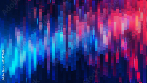 Digital Pixelation Art Vibrant Laser Red and Neon Blue Pattern