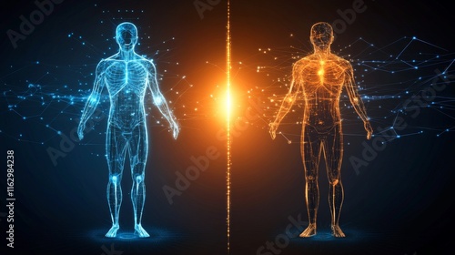 Digital representation of human anatomy split view.