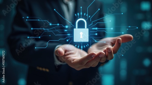 Digital Security Concept with Hands Holding Padlock Icon