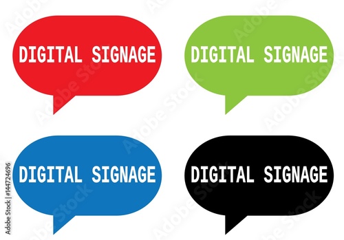 DIGITAL SIGNAGE text, on rectangle speech bubble sign.