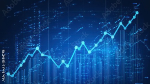 Digital stock market chart with step graph, rising bars representing investment growth, blue financial background, futuristic business analysis concept, economic trends visualization.