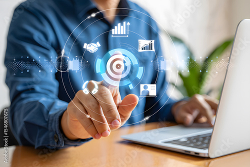 Digital Transformation Strategy A Man's Touch on Technology Interface with Business Growth Charts and Data Analysis for Modern Solutions and Innovative Progress in the Digital Age