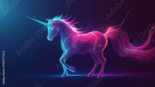 unicorn, digital, neon, light, horse, abstract, fantasy, art, three-dimensional, illustration, colourful, animal, colours, technology, magic, design, creative, modern, glow, running, moving, geometric, shape, structure, line, mesh, wireframe, beautiful, futuristic, vibrant, pink, blue, gradient, energy, dynamic, sparkle, particle, effect, background, dark, motion, graphic, digital artwork, horse