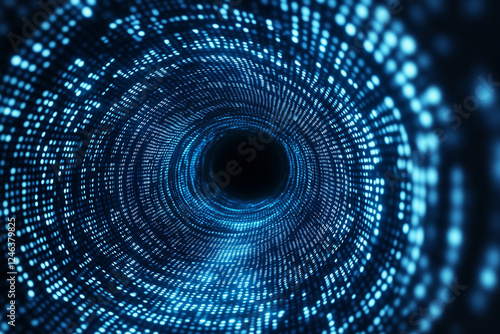 Digital Vortex: A mesmerizing digital vortex swirls with blue light, creating a futuristic and abstract tunnel of binary code, symbolizing the vast and enigmatic depths of the digital world.