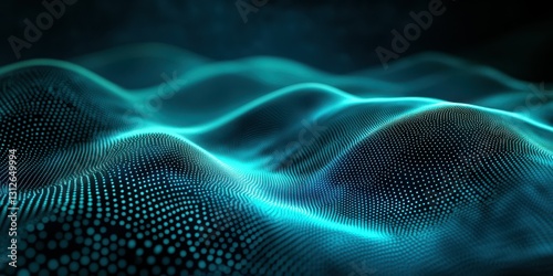 digital artwork, abstract, blue light, wave, dot, computer graphic, design, technology, visualisation, dark background, movement, depth, rythm, futuristic, pattern, creativity, inspiration, modern, animation, illumination, texture, aesthetic, visual, concept, simulation, luminance, environment, fluidity, harmony, science fiction, space, dynamic, energy, intrigue, contrast, perception, flow