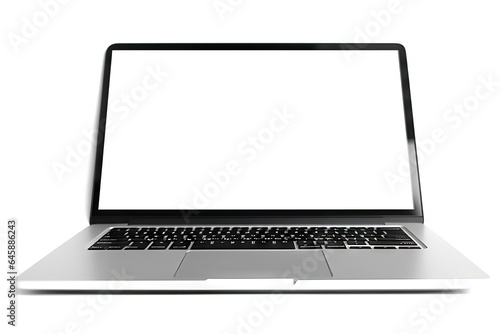 Digital workspace. Open laptop for business. Connected technology. Blank notebook screen on white background