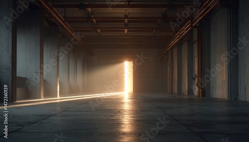 warehouse, empty, dim, cement, wall, floor, light, beam, doorway, box, stacked, industrial, shadow, abandoned, roomy, desolate, structural, decay, texture, cold, silence, storage, architecture, grunge, isolation, ray, dust, concrete, rust, echo, corridor, minimal, functional, geometric, hollow, haunting, monochrome, passage, stillness, urban, derelict, linear, atmosphere, forgotten