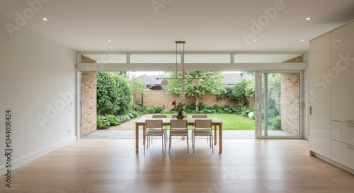 Dining Area Interior View with Garden, Open Doors and Natural Light