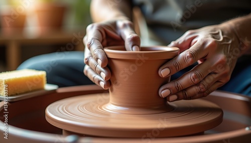 pottery, hand, shaping, wheel, clay, art, indoor, creative, dirty, artisan, hobby, craftsmanship, artistic, textured, natural, skilful, focused, workshop, material, cosy, tool, light, ceramic, beautiful, home, design, passion, workspace, practice, person, male, adult, aesthetic, unique, warm, creation, intricate, traditional, engaging, no people