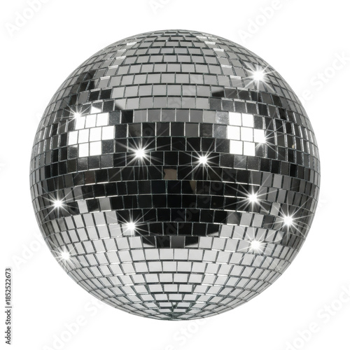 Disco ball reflection party venue decorative element nighttime isolated on transparent background