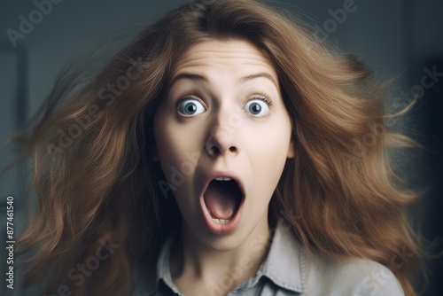 Disconcerted Shocked woman. Scream face panic. Generate Ai