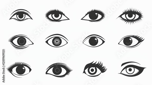 Discover a Stunning Assortment: Eye Icon Set, Silhouettes, and Retina - Scan Symbols