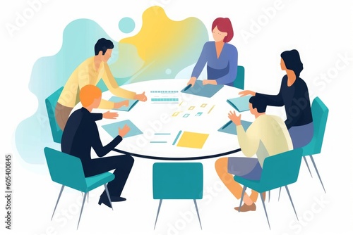 teamwork, discussion, business, strategy, table, meeting, team, planning, speak, project, brainstorming, success, profit, company, communication, cooperation, concept, progress, professional, people, organisation, office, finance, opportunity, economy, group, illustration, manager, corporate, job, work, man, management, businessman, flat