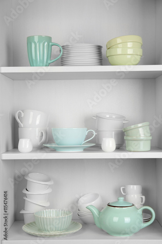background, blue, bowl, bowl, ceramic, ceramic, clean, closeup, colours, concept, crockery, cookery, cup, cupboard, cup, different, dining, dinnerware, dish, dish, crockery, empty, group, indoor, inside, interior, kitchen, kitchen utensile, light, plate, plate, porcelain, pot, prepare, saucer, saucer, serving, set, setting, shelf, shelf, tableware, tea, teapot, turquoise, utensil, utensil, view, white, wooden