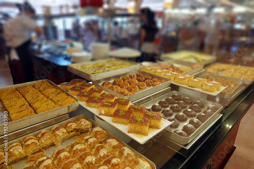 selective focus, sale, professional occupation, indoor, horizontal, fresh, display, food, female, bakery, eatery, sweet, delicious, dessert, meal, cake, snack, lunch