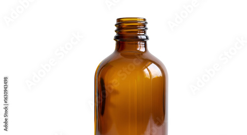 Displays Empty Brown Glass Bottle against Transparent Background in Studio Lighting for Mockup Use