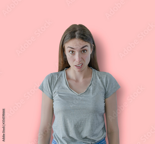 face, adult, arm, attractive, beautiful, camera, casual attire, caucasian, cheerful, closeup, cute, disappointed, displeased, dissatisfied, emotion, european, expression, fashion, female, folded, freckle, girl, hair, hand, isolated, lifestyle, long, looking, model, natural, negative, people, person, portrait, pretty, problem, studio, stylish, teenage, teenage, t-shirt, unhappy, upset, white, woman, young