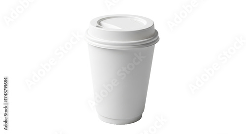 Disposable coffee cup mockup, white color, minimal design, isolated on transparent background