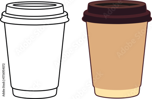 Disposable Coffee Cup Vector Illustration, Outline and Filled Style
