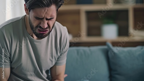 Distressed Man Experiencing Constipation Medical Issue Health Condition