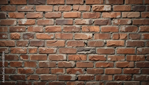 Distressed Red Brick Wall with Weathered Texture and Mortar Join
