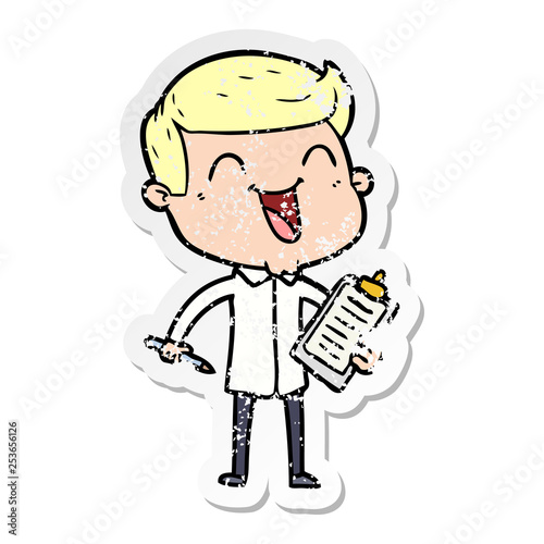 man, male, boy, happy, cheerful, people, person, cartoon, sticker, distressed, grunge, realistic, torn, ripped, old, stick, on, icon, decal, label, drawing, illustration, retro, doodle, freehand, free, hand, drawn, quirky, art, artwork, funny, character