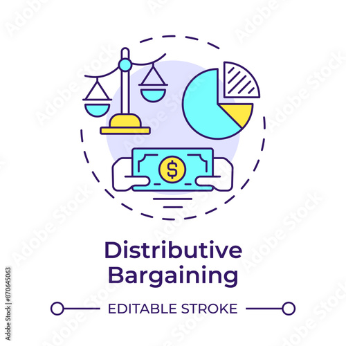 Distributive bargaining multi color concept icon. Negotiation strategy, resources allocation. Round shape line illustration. Abstract idea. Graphic design. Easy to use in infographic, presentation