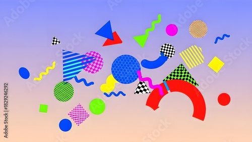 Dive into vibrant retro vibes with playful geometric shapes and a dynamic Memphis design, perfect for adding a splash of 80s charm to your project