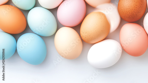 Diverse Assortment of Easter Eggs in Pastel Colors for Festive Holiday Backgrounds and Decorations