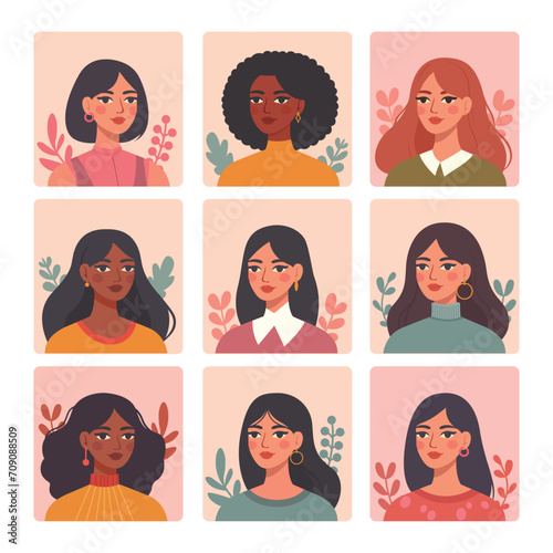 Diverse Beauty and Style Women Portraits with Elegant Style Vector Illustrations Set