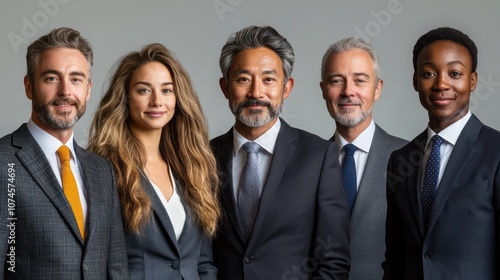 Diverse business group from the United Kingdom, including youth and elderly, professional attire, isolated, white background