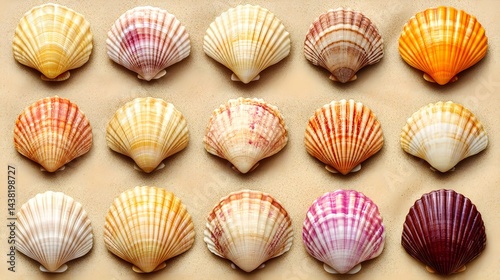 seashell, collection, colours, pattern, marin, ocean, nature, texture, detail, background, arrangement, photo, artistic, decorative, coastal, natural, aquatic, shell, art, smooth, design, light, vibrant, pastel, unique, surface, element, visual, aesthetic, beauty, minimalist, closeup, circular, seafood, oceanic, simplicity, environment, color palette, display, study, fresh, organic, inspiration