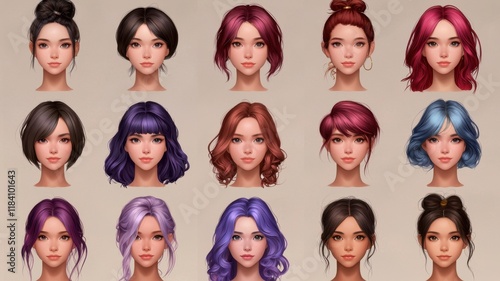 Diverse Female Portraits Asian Women with Varied Hairstyles and Hair Colors