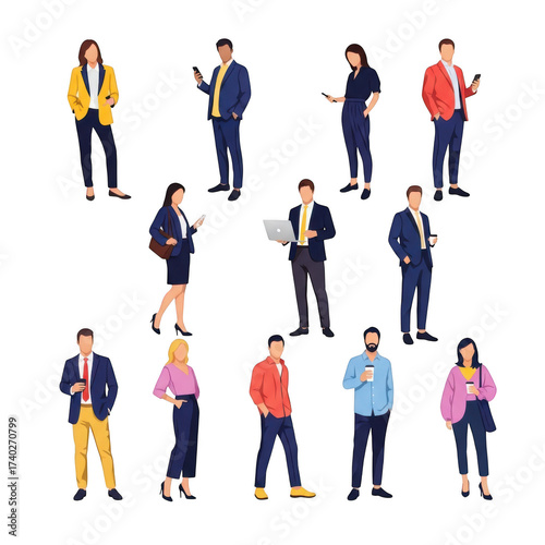 business, people, professional, office, men at work, team, group, man, woman, suit, casual attire, wear, formal, standing, posing, laptop, phone, attire, modern, vector, illustration, clip, art, icon, isolated, transparent, background, white, collar, corporate