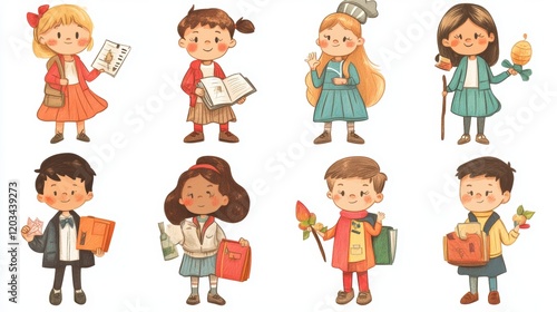 children, diversity, talent, hobby, interest, activity, reading, cooking, art, school, backpack, costume, explore, creativity, play, fun, expression, learning, teamwork, friendship, education, book, music, game, celebration, imagination, character, happiness, community, illustration, art, youth, culture, skill, sharing, storytelling, adventure, craft, performing