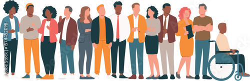 diversity, inclusion, accessibility, professional, group, teamwork, wheelchair, disability, people, standing, business, corporate, team, collaboration, manpower, white background, inclusive, accessible, equity, community, ethnicity, occupation, career, cooperation, employee, multicultural, multiracial, support, achievement, partnership, oneness, human resources
