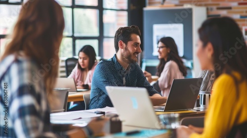 professional, office, working, modern, diverse, co-worker, collaboration, technology, laptop, business, meeting, teamwork, corporate, environment, man, woman, discussion, creativity, productivity, adult, casual attire, communication, desk, indoor, occupation, planning, sitting, concentration, sharpened, employment, contemporary, digital, networking, strategy, success, team, interaction, multitask, young, urban, ambitious, innovation, diversity, professionalism