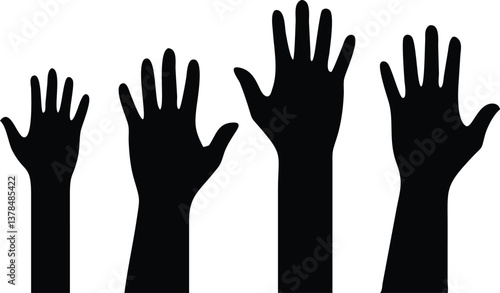 hand, raised, silhouette, arm, diversity, vote, participation, community, support, helping, giving, care, equal, human, together, cooperation, reaching, oneness, crowd, people, transparent, teamwork, arm, body, finger, open, black, upward, growth, success, hope, equality, symbol, different, size, background
