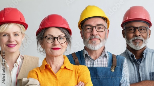 construction, men at work, safety, helmet, mature, diverse, team, manpower, male, female, caucasian, african, hispanic, elderly, adult, teamwork, industry, engineering, occupation, labor, professional, collaboration, diversity, inclusion, uniform, attire, equipment, protection, life events, leadership, senior, expertise, dependability, group, portrait, elder, skilled, craftsmanship, community