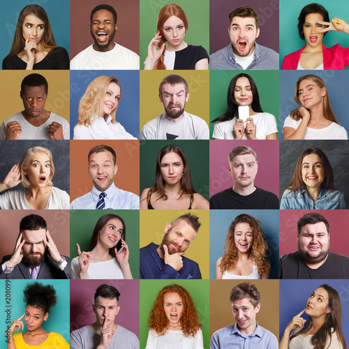 adult, african american, background, black, business, caucasian, cheerful, collage, collection, colourful, confident, different, diverse, emotional, expression, face, feeling, female, fun, girl, grimacing, happy, head, joyful, many, mosaic, multiple, playful, portrait, positive, series, set, smile, studio, woman, young, sad, angry, confused, creepy, man, gesticulate, success, hand, fist