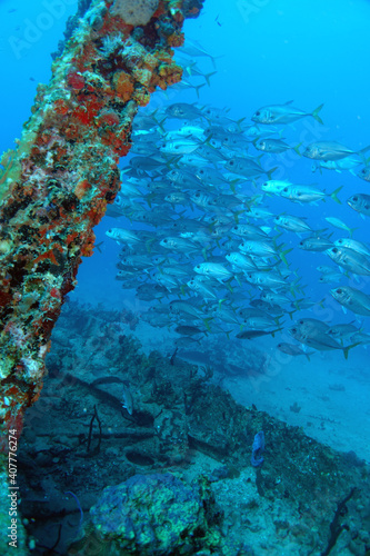 Diving at the Royal Mail Steamer Rhone sank 1867, Island Salt, British Virgin Island, Caribbean wreck dive, Fun diving with beautiful fishes