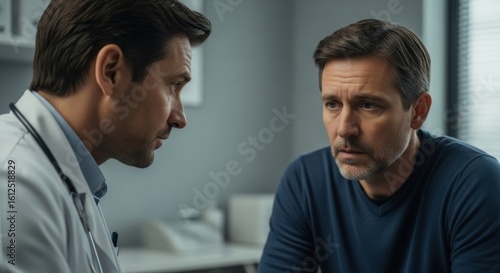 Doctor and patient having a serious conversation in a clinic examination room