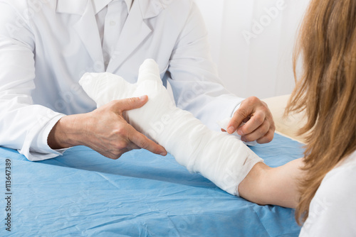 fracture, doctor, arm, bone, wound, gypsum, care, nurse, hand, patient, bandage, injured, bandaging, bandaged, aid, pain, tape, bed, joint, medicals