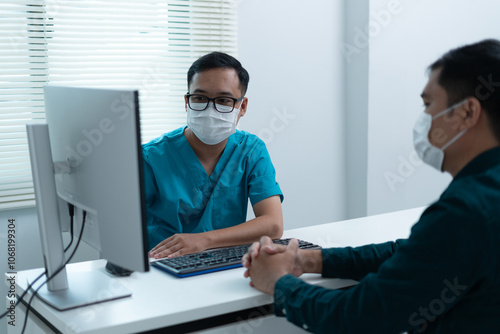 doctor, patient, consultation, health care, physician, professional, discussion, mask, pandemic, safety, medical office, exam, medical professional, clinical, trust, communication, treatment, diagnosis, prevention, well-being, hospital, compassion, caring