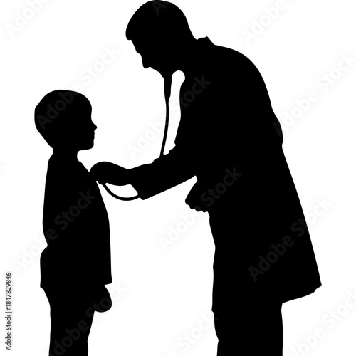 doctor, children, health care, medicals, silhouette, isolated, cut-out, transparent, background, examining, listening, patient, health, care, hospital, clinic, pediatric, flat, minimal, black, white, person, people, wellness, treatment, diagnosis, body, anatomy, profession, consultation, well-being, web, mobile, app, branding, print