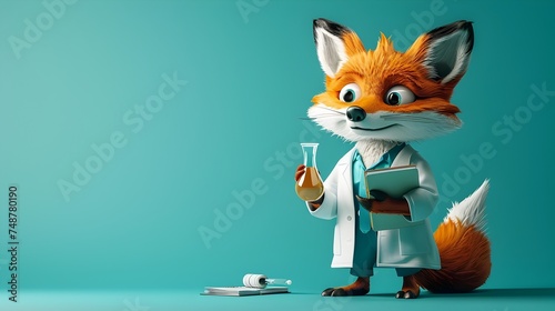 Doctor Fox in Lab Coat with Test Tube and Beaker