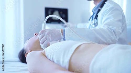 doctor, patient, ultrasound, exam, medicals, health care, medicine, hospital, clinic, health, diagnosis, treatment, care, equipment, scan, procedure, neck, woman, female, lying down, professional, technology, disease, disease, wellness, healthy, check-up, man, male, science, exam, examining, hand, glove, blue, protective, use, using, thyroid, lying, sitting, service, cabinet