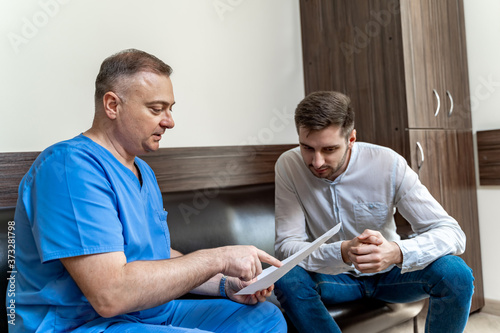 man, medicine, patient, physician, issue, result, practitioner, problem, profession, professional, radiologist, result, showing, sick, specialist, treatment, trouble, visit, ill, x-ray, health care, doctor, discussing, appointment, assistance, clinic, hospital, clinician, diagnosis, disease, exam, explaining, health, consulting, communicating, attention, young, talking, adult, joint, pointing, image, spinal, hand, human, vertebra